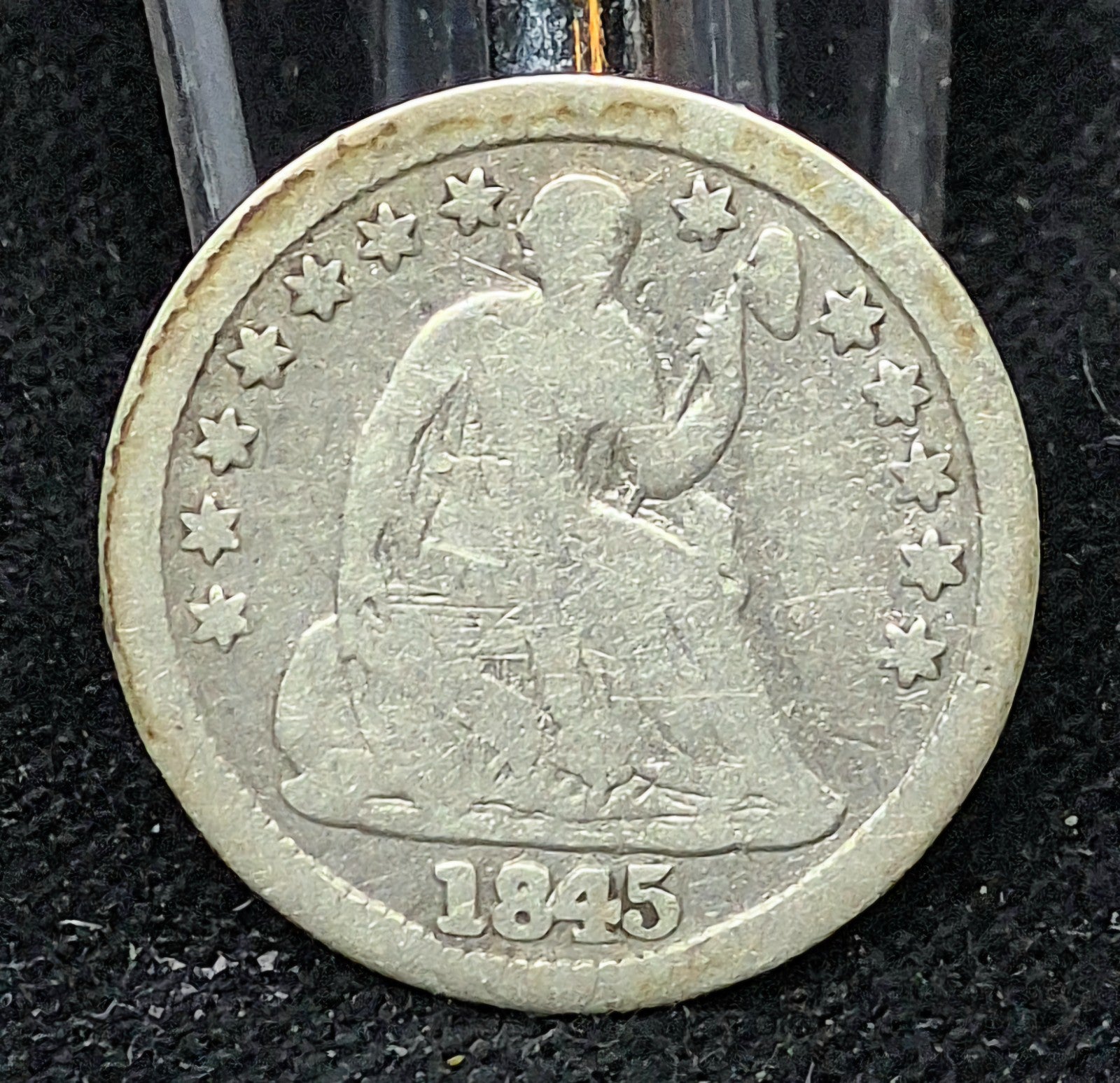 ✅ 1845 Seated Liberty Half Dime Fine Features 90% Silver 5C Coin Better Date
