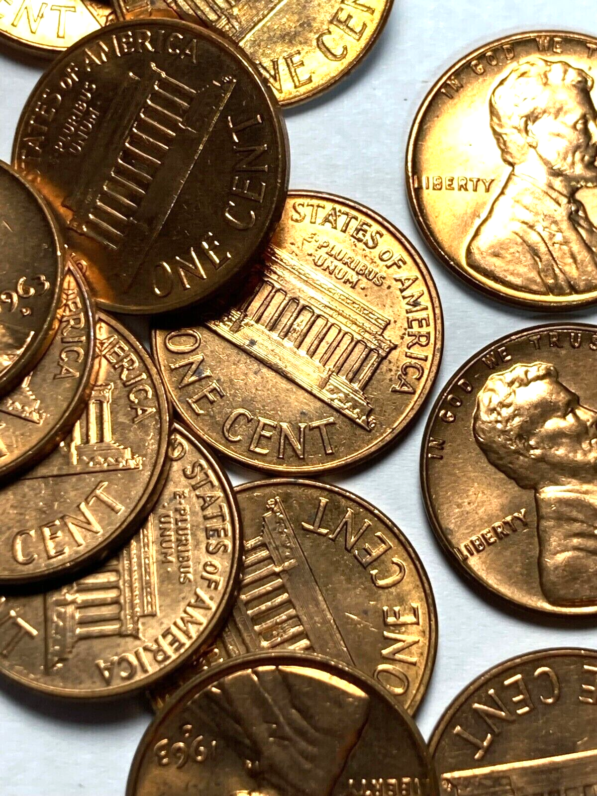 ✅ 1963 D BU Lincoln Memorial UNCIRCULATED Shiny Red From OBW Mint Roll Coins NOS