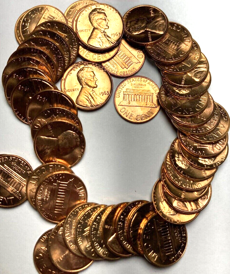 ✅ 1963-P BU UNC Lincoln Memorial Shiny Red Uncirculated Condition Mint Roll Coin