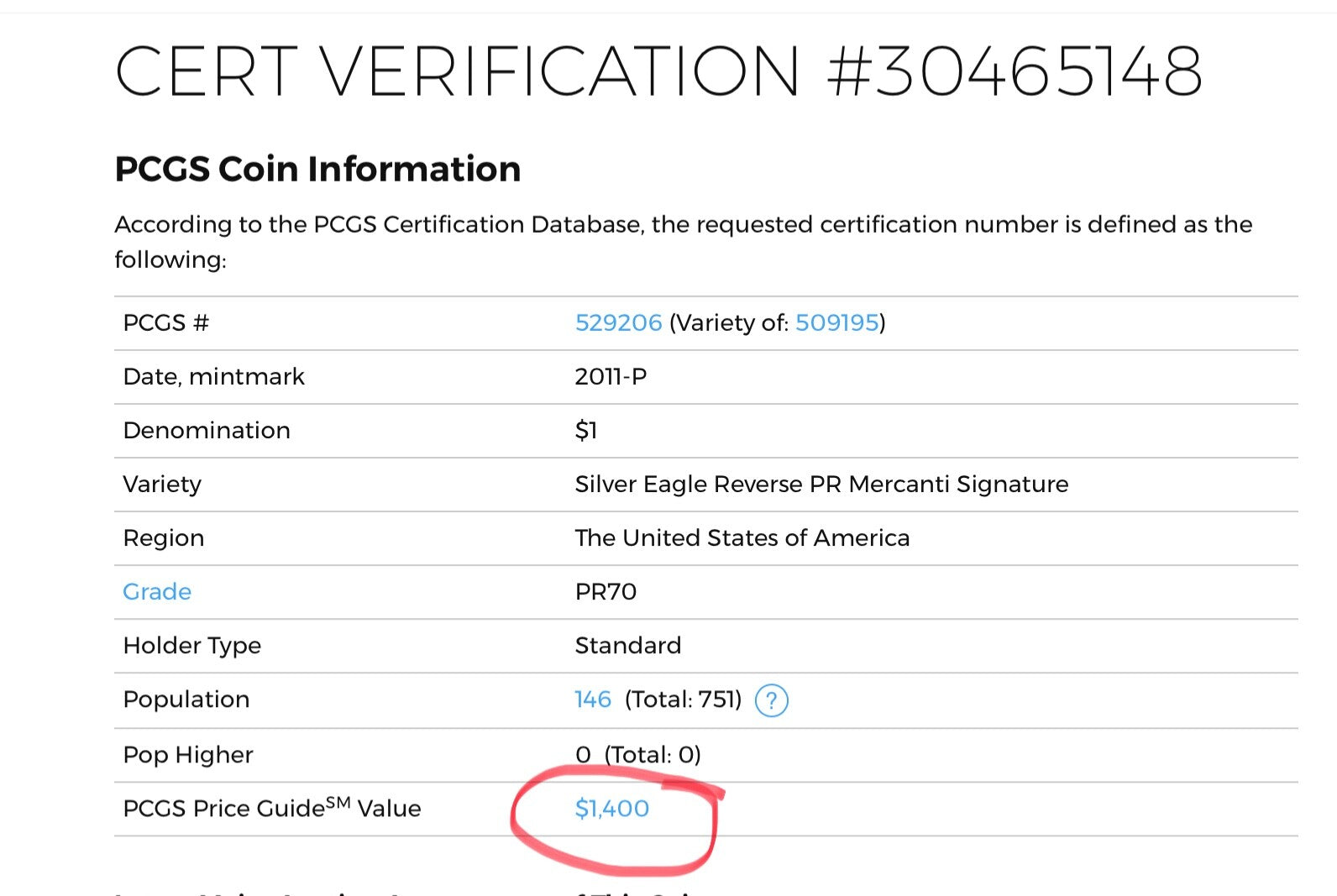 ✅ 2011-P Reverse Proof Silver Eagle PCGS PR70 JOHN MERCANTI Autographed Label