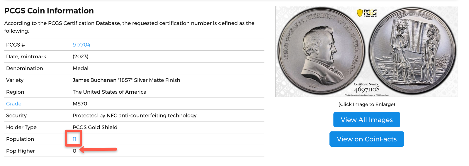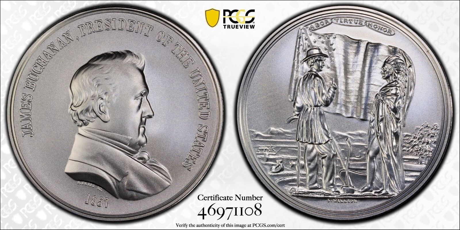 ✅ 2023 PCGS MS70 James Buchanan "1857" Presidential Silver Medal Gold Shield TrueView Images ✅