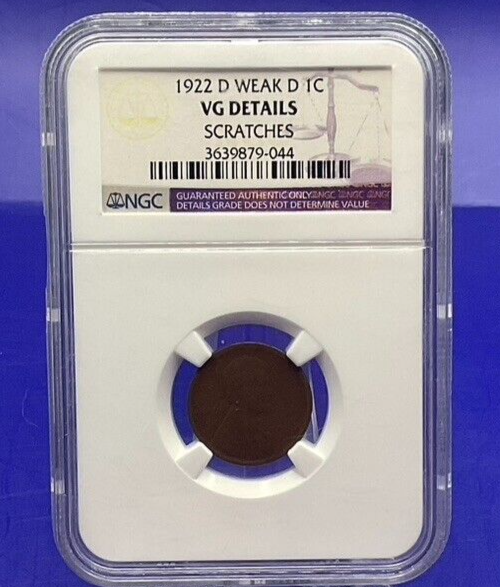 ⭐️ 1922 D WEAK D Lincoln Wheat 1c Cent NCG VG Details Nice Collectible Coin