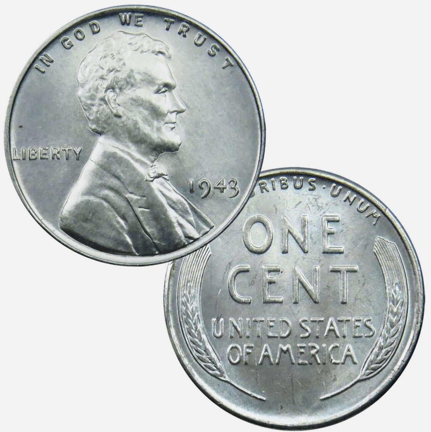 A variety of the U.S. one-cent coin with the same design of the copper Lincoln cent, the 1943 zinc-coated steel penny is a wartime issue which was struck in steel due to shortages of copper during World War II. These were minted in Philadelphia, Denver and San Francisco.