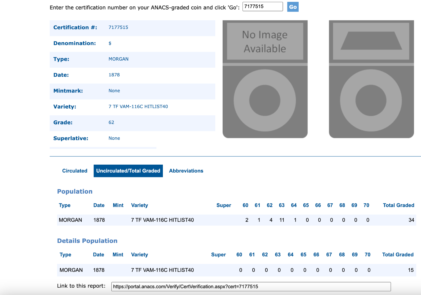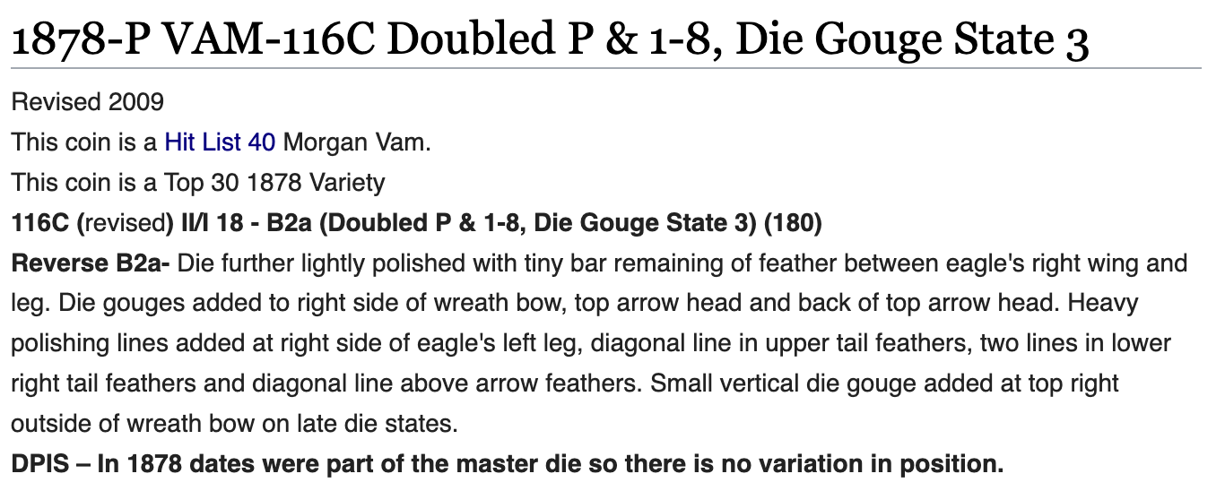 1878 P 7TF Rev 78 ANACS MS62 VAM-116C Hit List 40 Morgan Silver Dollar Top 30!