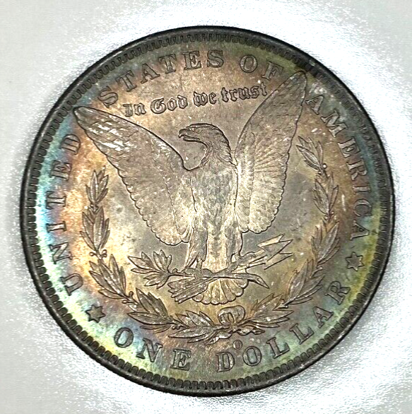 1884 O Morgan $1 Dollar 90% Silver BU MONSTER TONER Blue Salmon Colors Toned