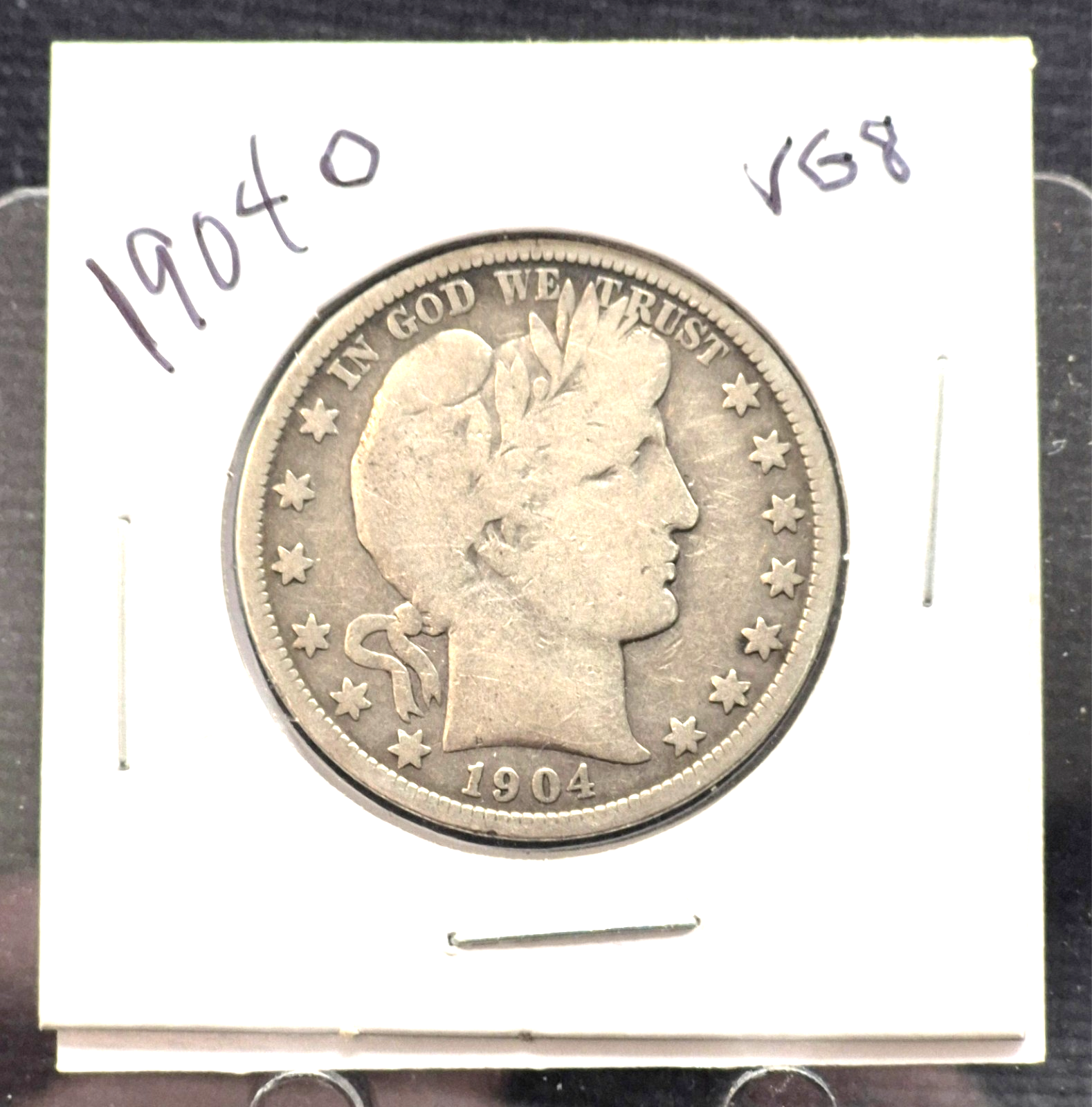 1904 O Barber Half Dollar 90% Silver 50C Partial Liberty, Full Motto, Full Rim