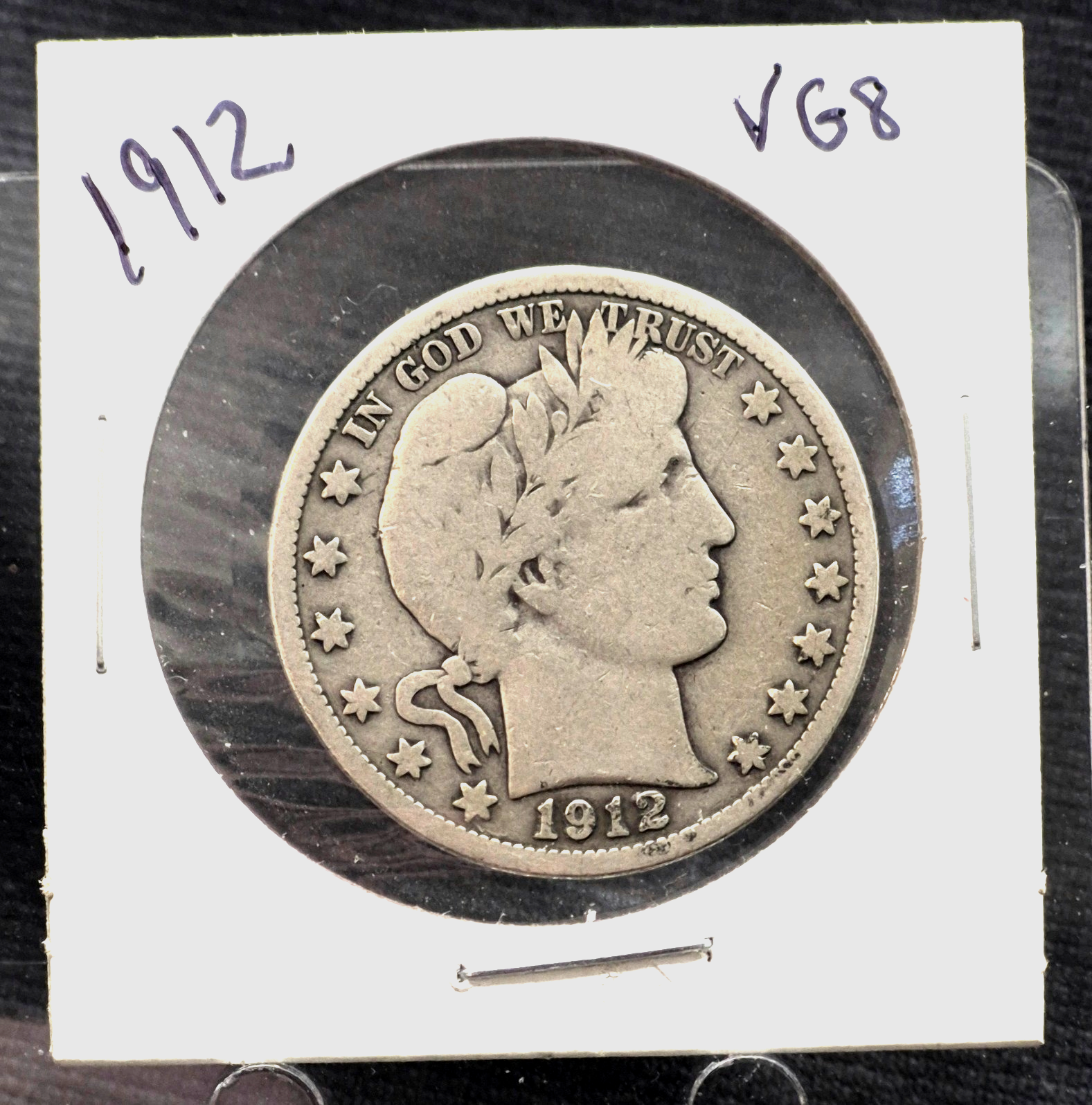 1912 Barber Half Dollar 90% Silver 50C Full Motto, Full Rims, Partial Liberty