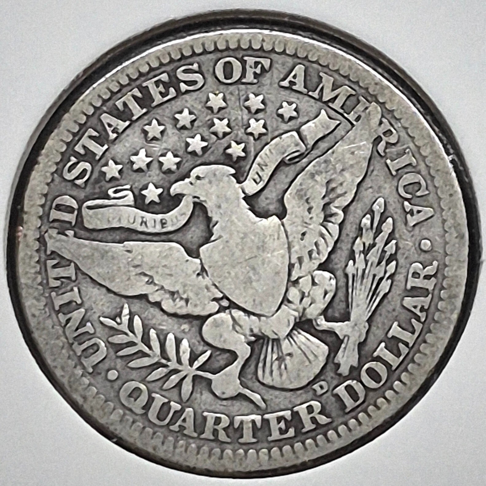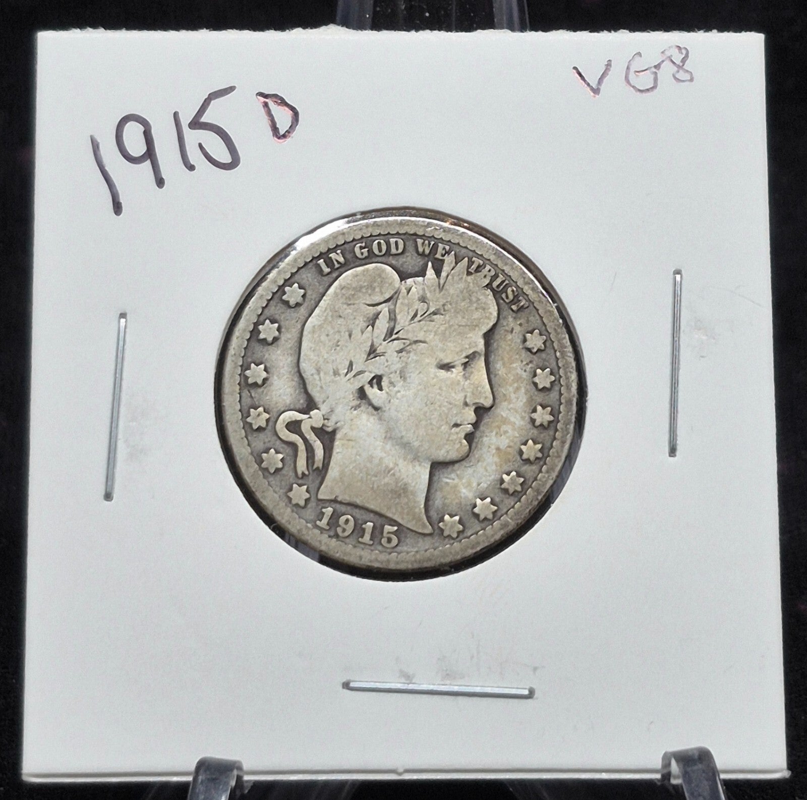 1915 D Barber Silver Quarter 90 % SILVER Vintage Coin Raw Circulated Condition
