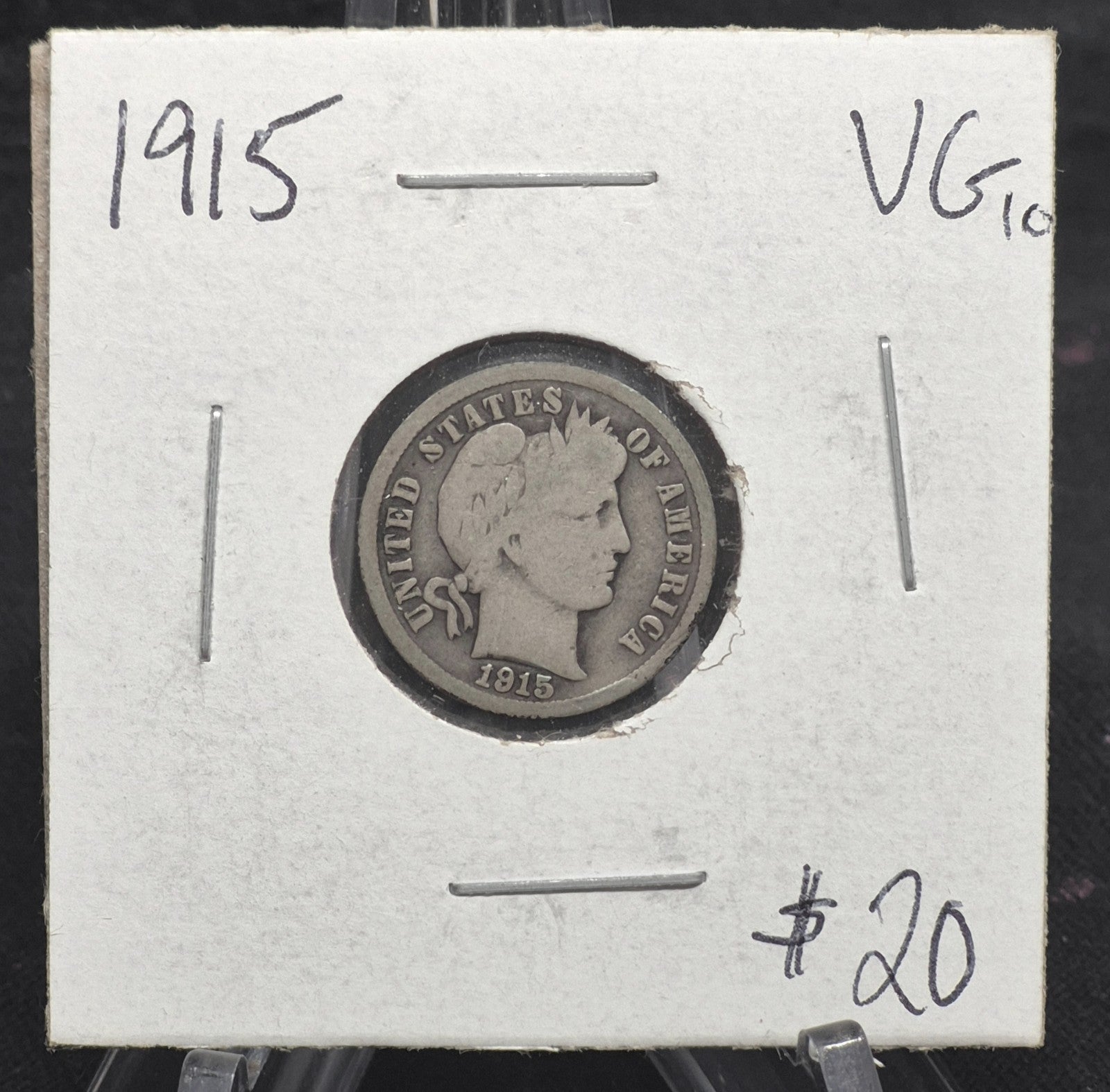 1915 P Barber Dime 🥈90% Silver🥈 Very Good Detailed Circulated Condition