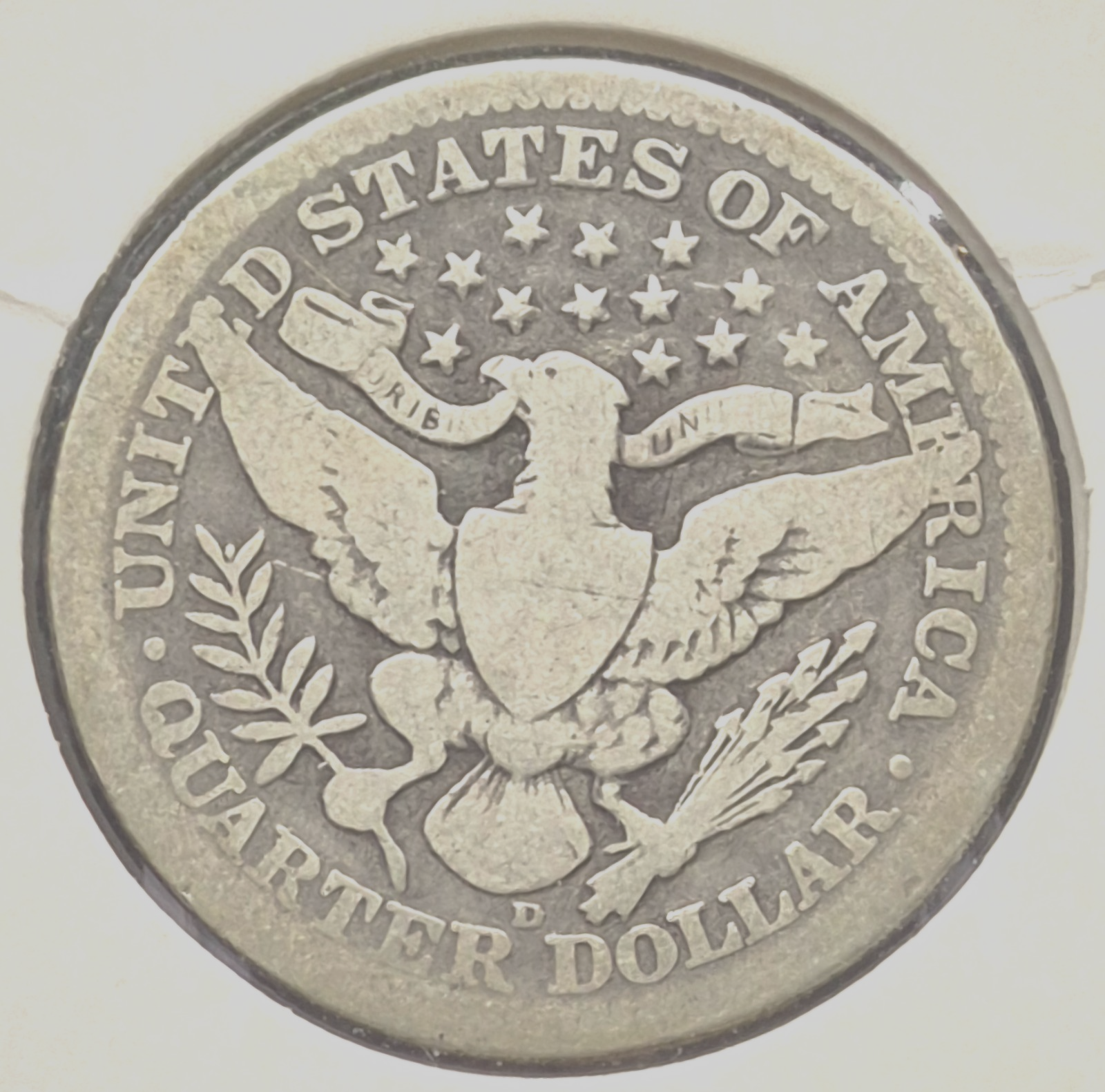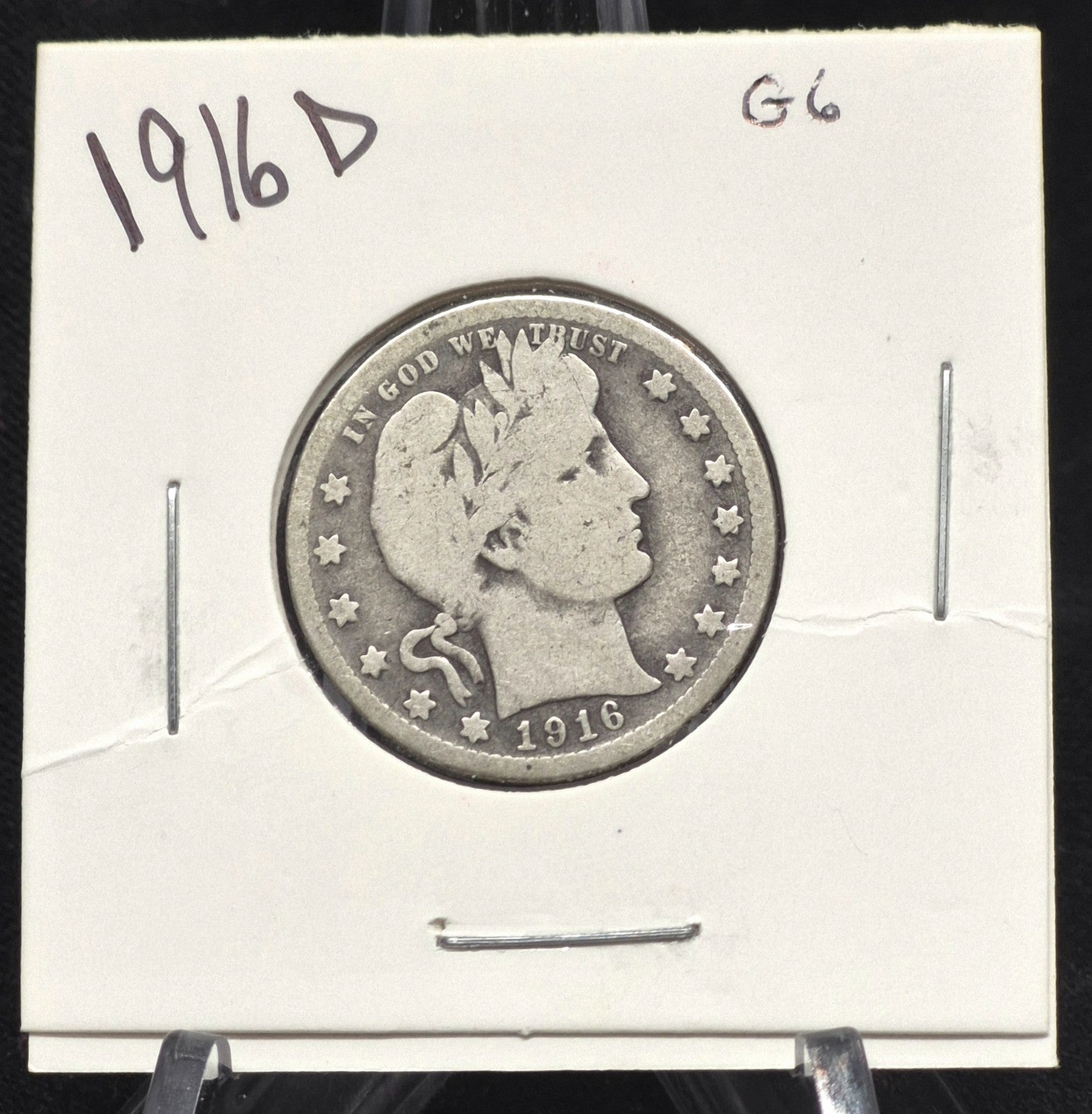 1916 D Barber Quarter 🥈90 % SILVER Good Condition Partial Motto Last Yr Minted