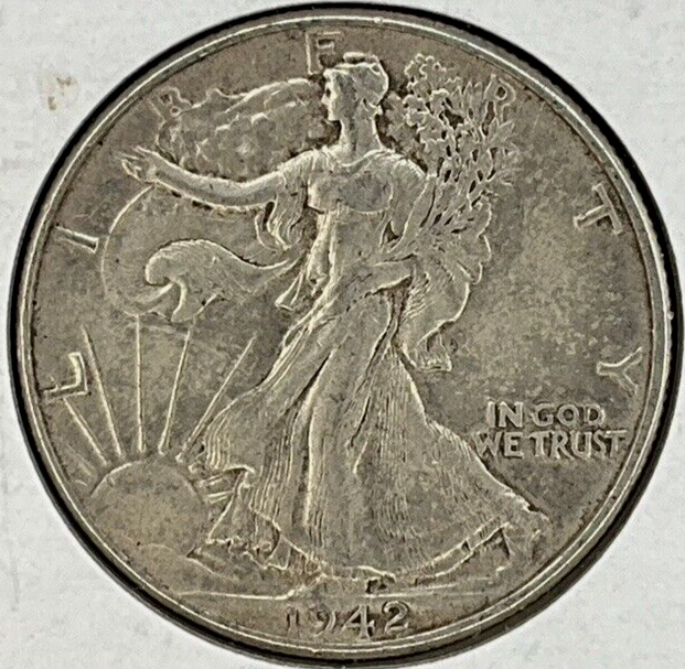 1942 P Philadelphia Mint Walking Liberty 90% Silver Half Dollar Coin