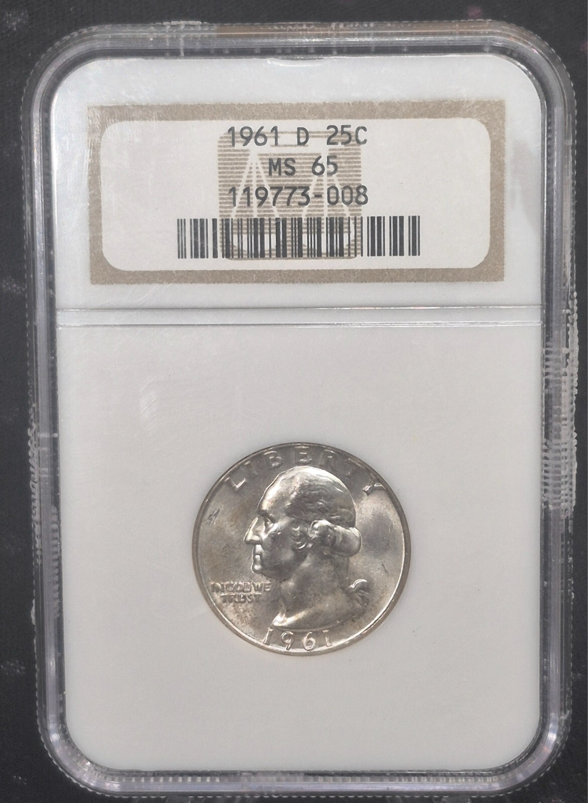 1961 D 90% Silver Washington Quarter NGC MS 65 Highly Collectable Vintage Case