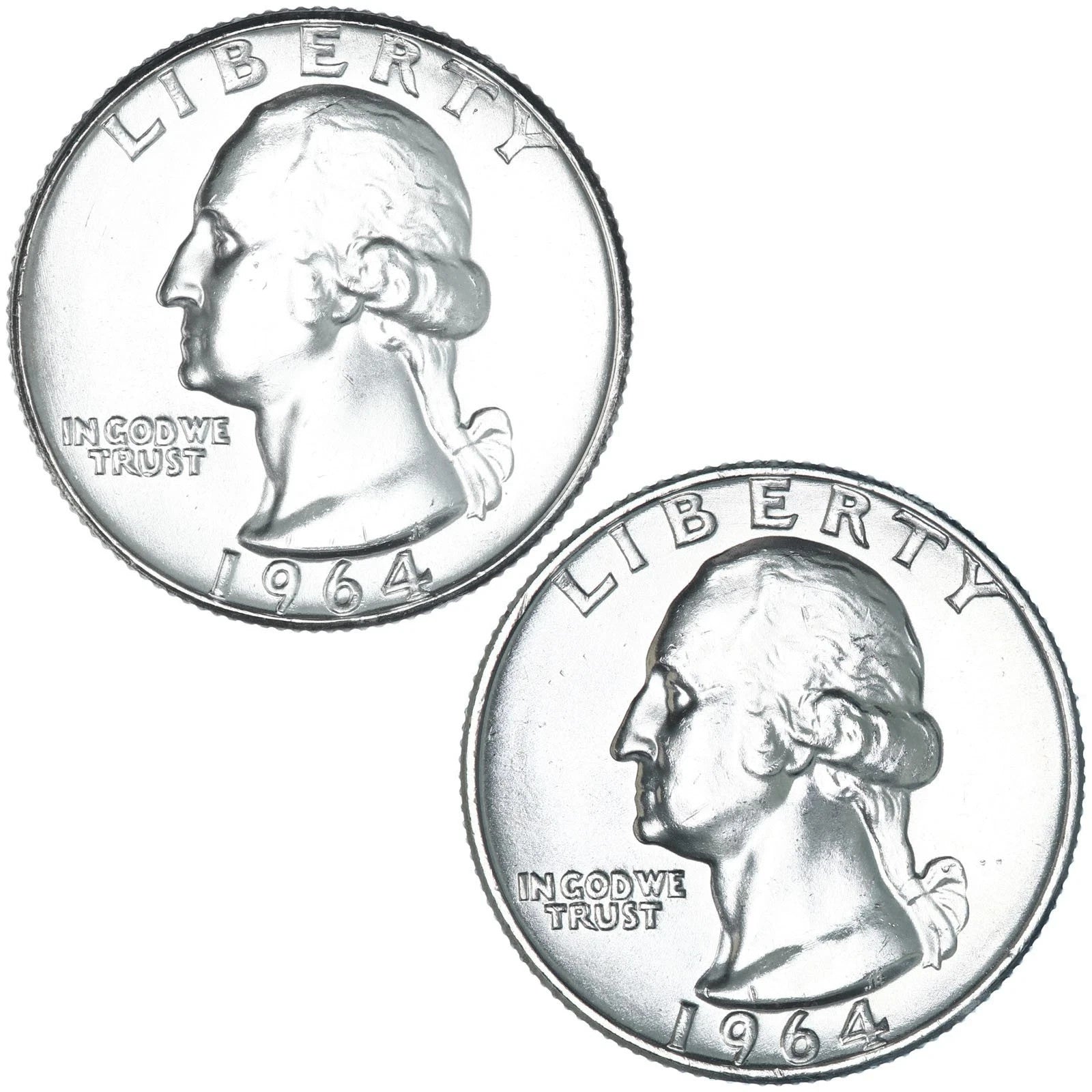 1964 P & D Washington 90% SILVER Uncirculated 2 Quarter Set BU Coins