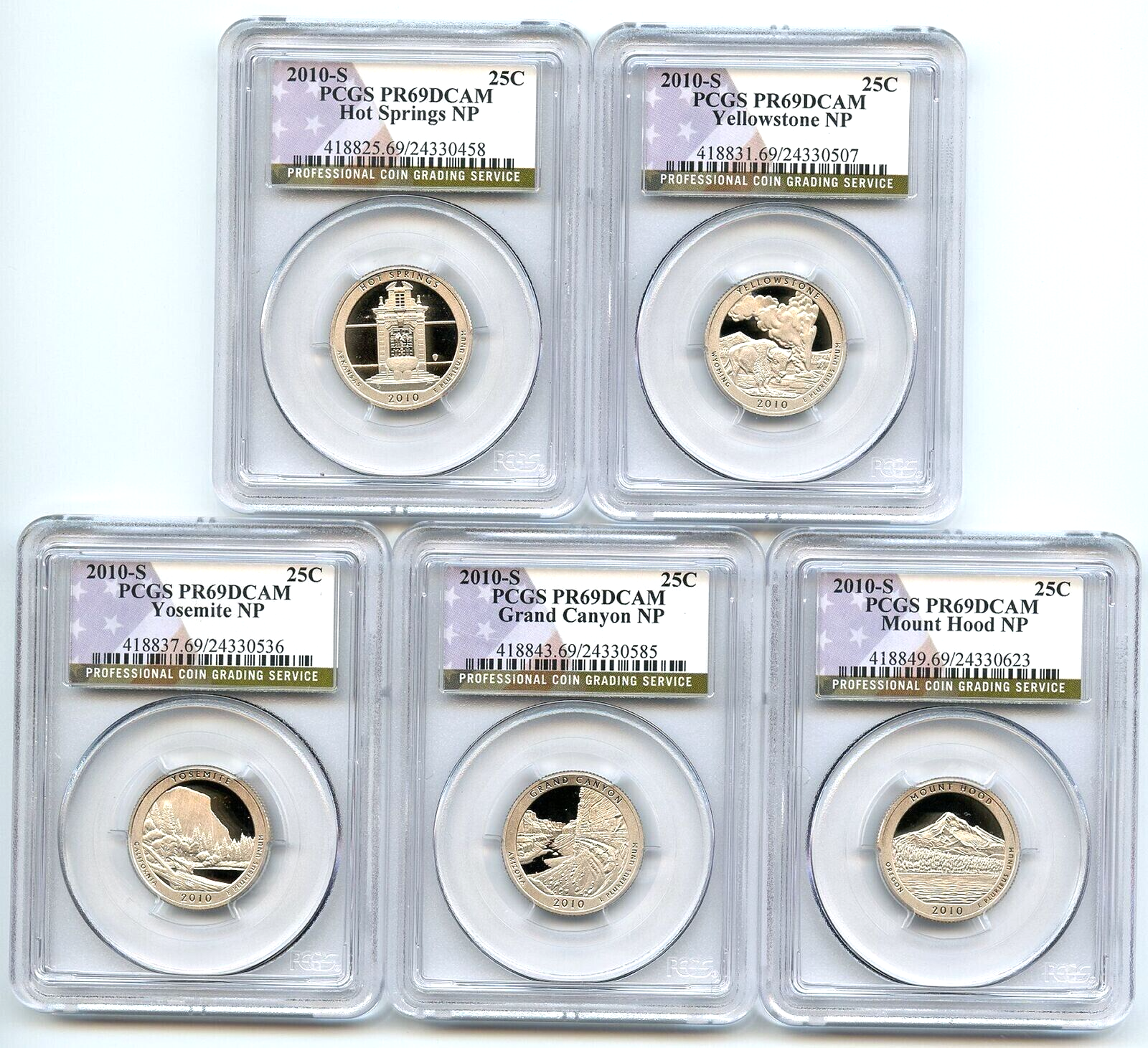 2010 S National Parks 5 Coin Quarter Set PCGS PR69DCAM Special Flag NP Label
