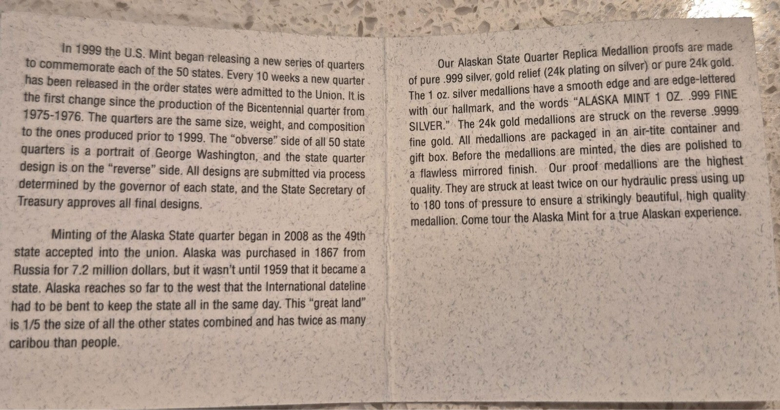 2011 Alaska Mint 1 Oz Silver Coin .999 Fine