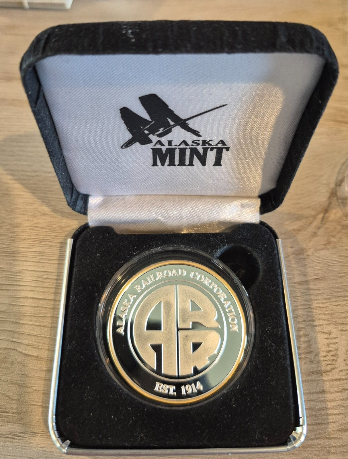 2011 Alaska Mint 1 Oz Silver coin .999 Fine /24 KT Gold Relief Commem Alaska RR
