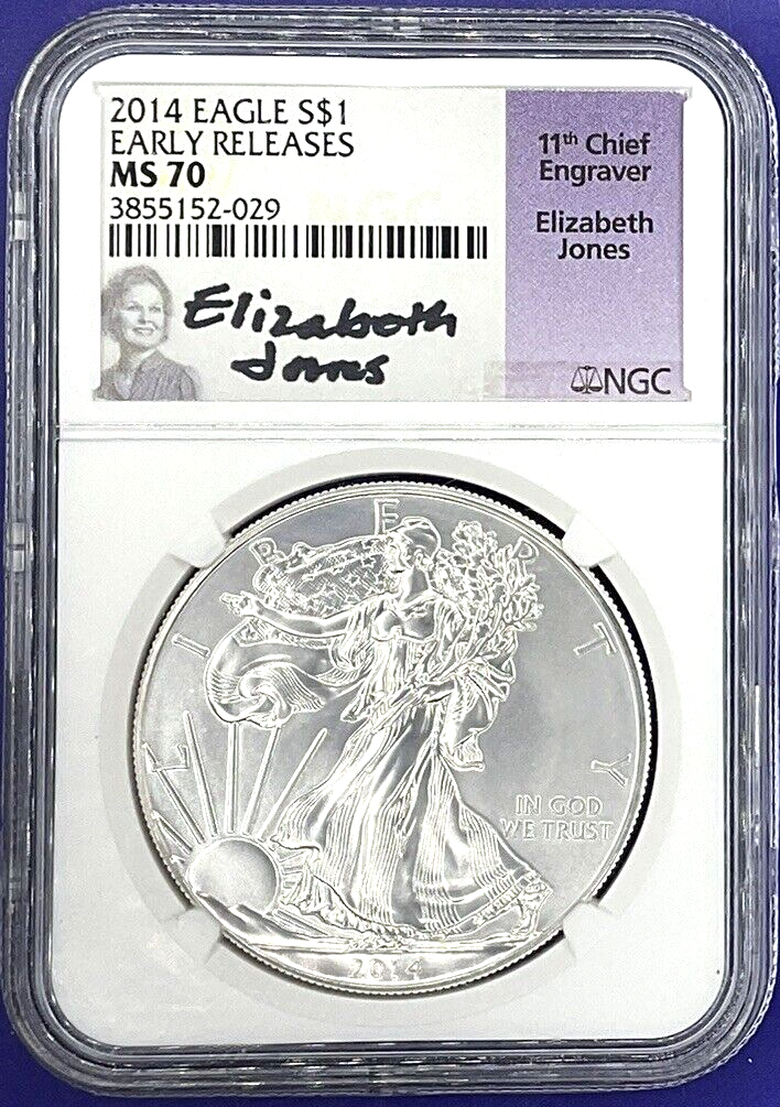 2014 American Silver Eagle NGC MS70 EARLY RELEASES Elizabeth Jones Signed Label