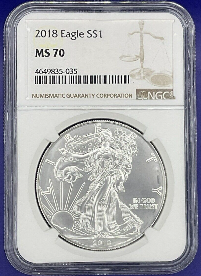 2018 American Silver Eagle ASE $1 NCG MS 70 Brown Scales Label Shiny White Coin