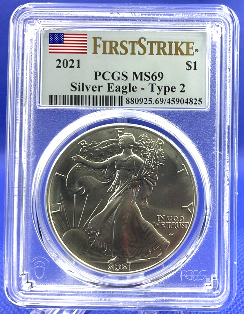 2021 $1 American Silver Eagle Dollar Type 2 PCGS MS69 First Strike US FLAG Label