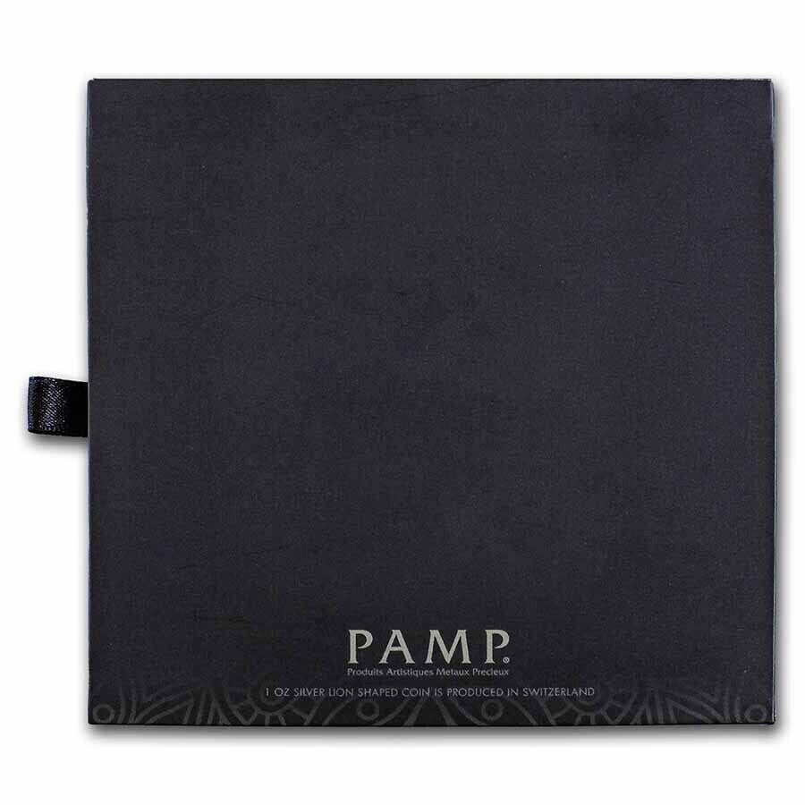 Own a beautiful 2021 Silver Animals of Africa: African Lion from Pamp Suisse. This stunning 1 oz silver piece has a fineness of .9999 and a denomination of 2 Dollars. It is uncirculated and comes with a presentation box, making it an excellent addition to your collection. The coin features a detailed lion design, a symbol of strength and courage in African culture. This rare piece is a must-have for any collector and is a great investment for the future.