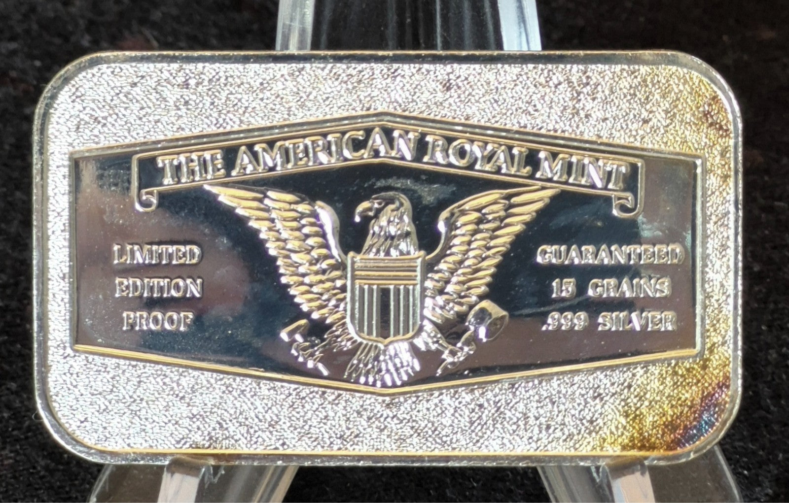 "The General" 15 Grains Vintage Silver Bar from The American Royal Mint, Toned
