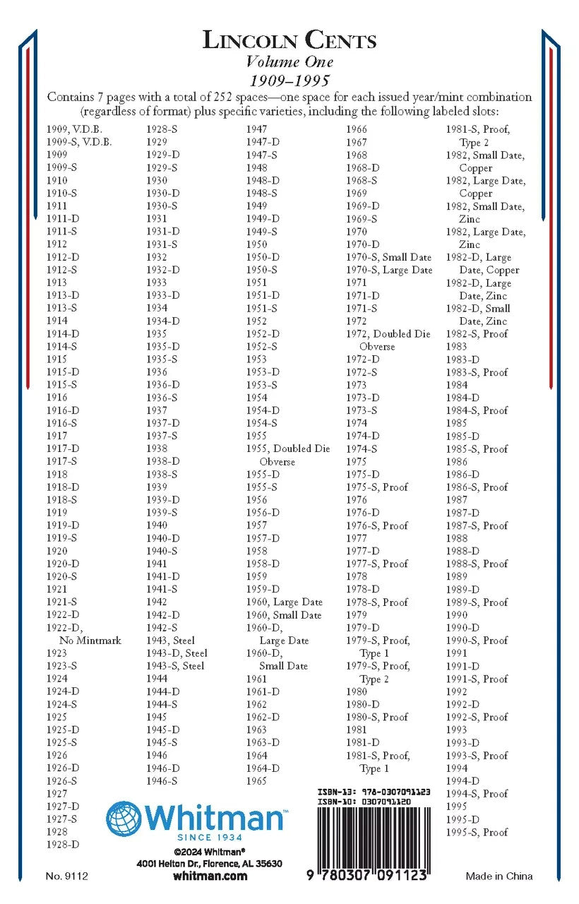 U.S. Lincoln Cents: 1909-1995 - Whitman Classic Coin Album PA, Denver & SF Mints